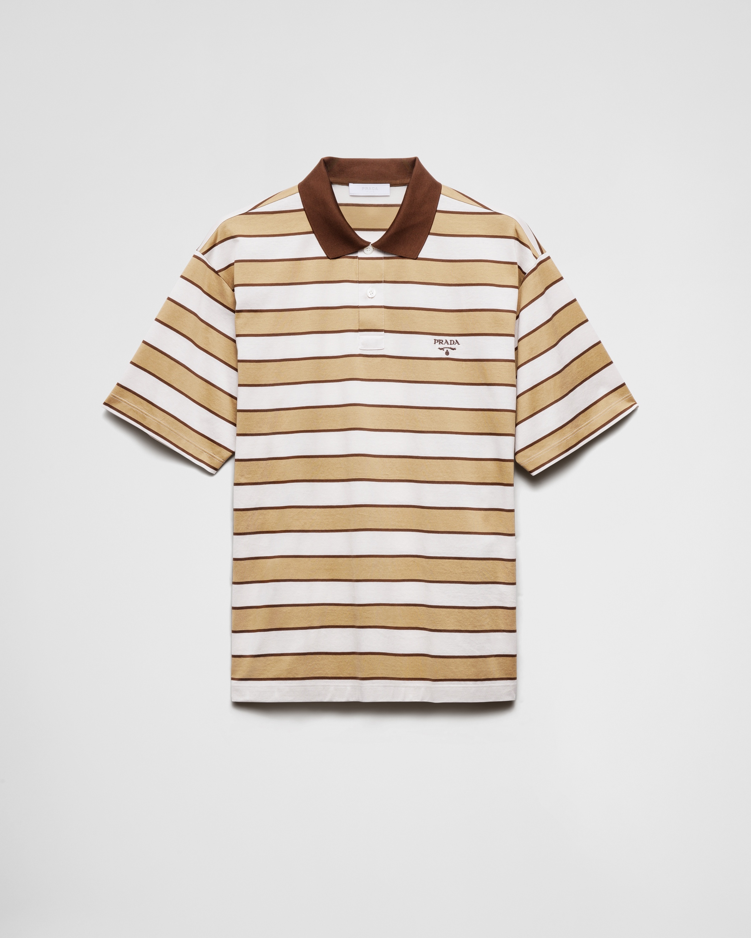 A strip motif in a contrasting color animates this cotton polo shirt characterized by a boxy fit and decorated with the lettering logo. - Product code: UJN922_16S0_F0AU1_S_WMO - Boxy fit - Short sleeves - Ribbed knit contrasting collar - Straight hem - Mother-of-pearl buttons - Embroidered logo in a contrasting color - Length: 70 cm, size: M - Imported - The model is 190 cm tall and wears a size 48 Height: 70cm MATERIALS Main material: 100% cotton