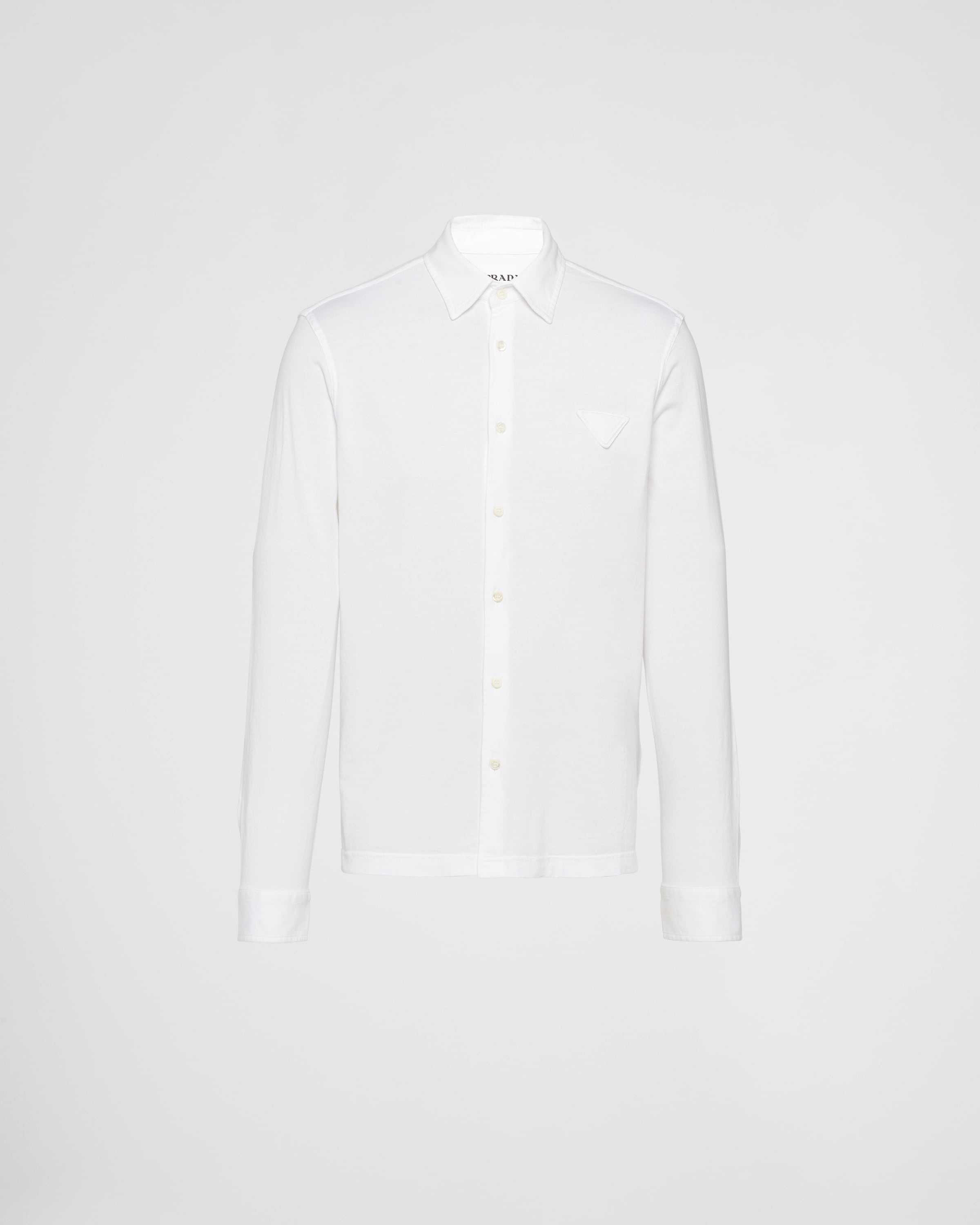 Relaxed allure distinguishes this cotton shirt with a boxy silhouette, an emblem of modern elegance. The simple but refined garment is completed by mother-of-pearl buttons and is decorated with the fabric triangle logo. - Product code: UJL92A_13CC_F0009_S_232 - Boxy fit - Long sleeves. - Straight hem - Mother-of-pearl buttons - Fabric triangle logo - Imported - The model is 188 cm tall and wears a size 48 Height: 72cm MATERIALS Main material: 100% cotton