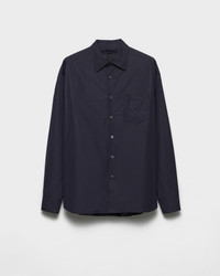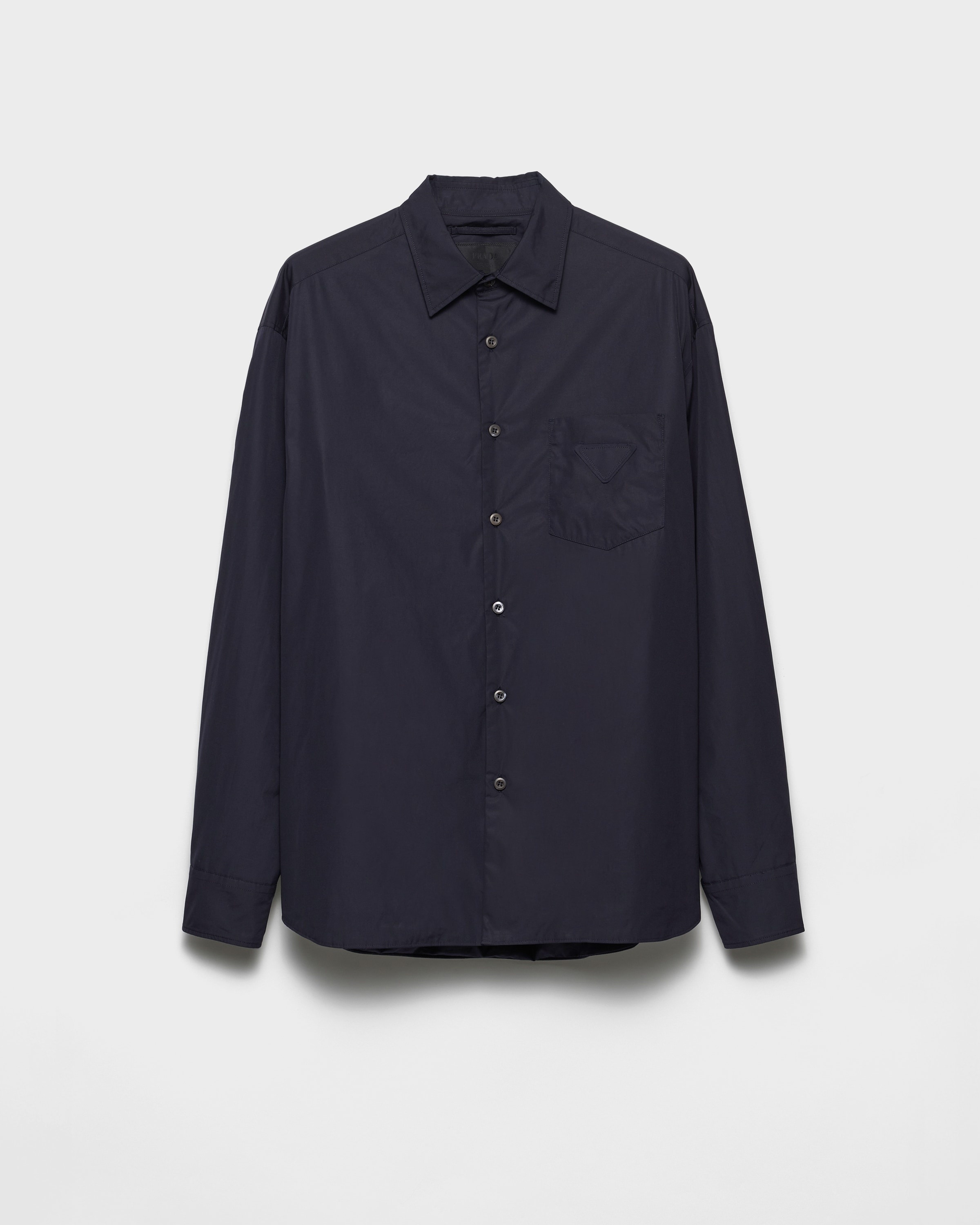 The contemporary evolution of a wardrobe staple, this shirt with hybrid style is made of cotton and has a classic cut. The inseam pockets and light padding define the refined, versatile garment. - Product code: SC813M_172X_F0SVF_S_OOO - Oversized fit - Classic collar - Inseam pockets - Rounded hem - Cuffs with mother-of-pearl button - Mother-of-pearl button closure - Lined and padded garment - Fabric triangle logo and sartorial label on the front - Patch pocket on the front - Imported - The model is 189 cm tall and wears a size 48 Height: 78cm MATERIALS Main material: 100% cotton