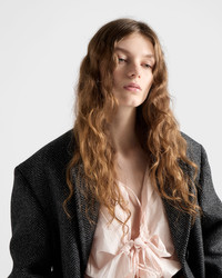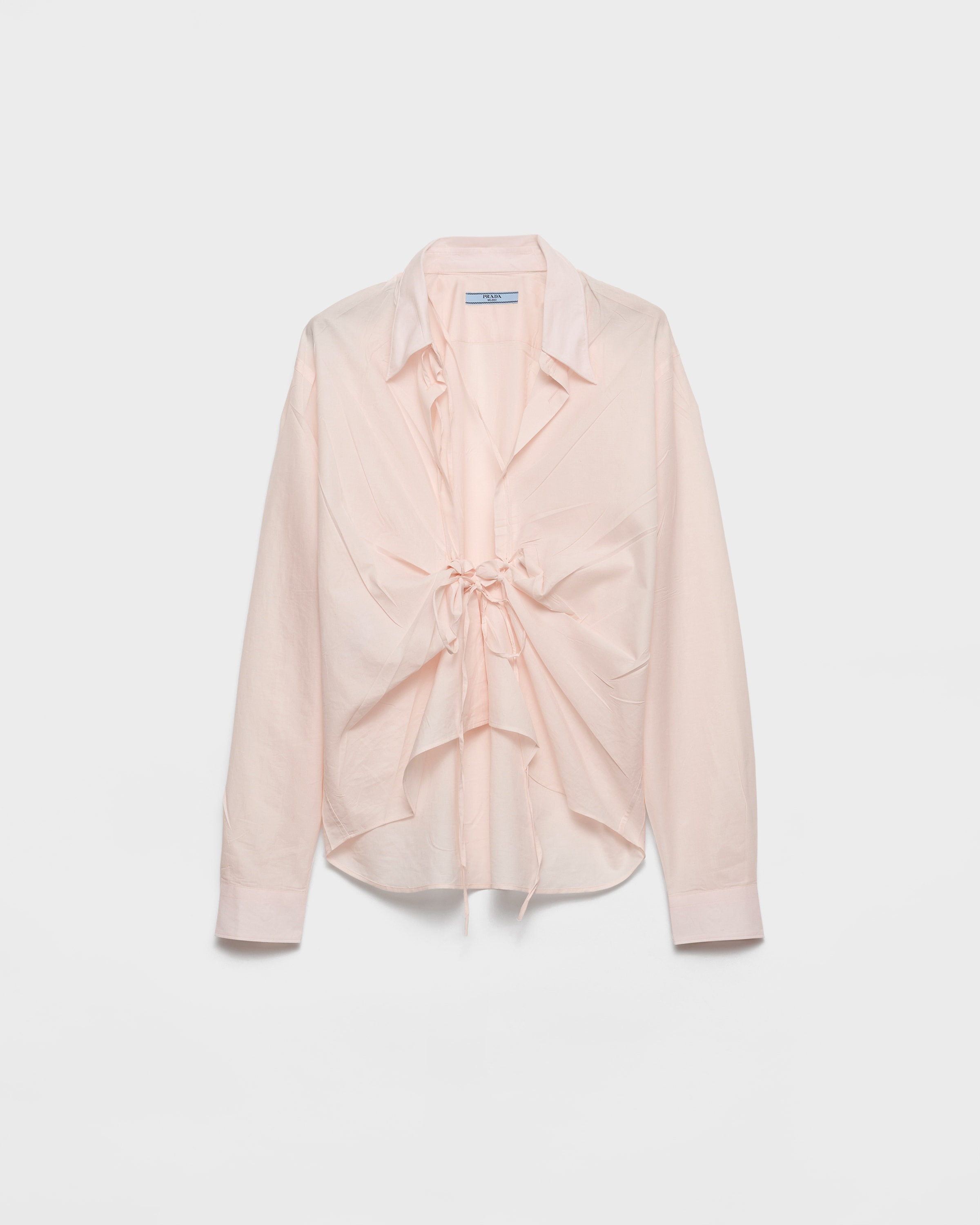A design inspired by movement, this cotton shirt embodies unconventional, modernist style. The lightweight silhouette combines classic lines with a gathered effect made with moldable elements that emphasize the dynamic character of the style. - Product code: P481I_171G_F0028_S_OOO - Menswear fit - Shirt collar - Front closure with laces - Long sleeves - Fabric triangle logo - Shapeable collar and hem - Imported - The model is 178 cm tall and wears a size 38 Height: 67cm MATERIALS Main material: 100% cotton