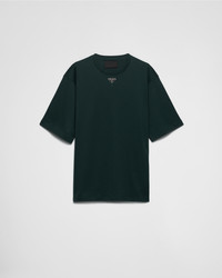 This short-sleeved cotton tee with ribbed knit crew neck has an oversized fit. The garment is decorated with the iconic enameled metal triangle logo on the front. - Product code: UJN861_240_F0422_S_232 - Oversized fit - Short sleeves - Straight hem - Enameled metal triangle logo - Imported - The model is 190 cm tall and wears a size 48 Height: 74cm MATERIALS Main material: 100% cotton