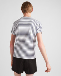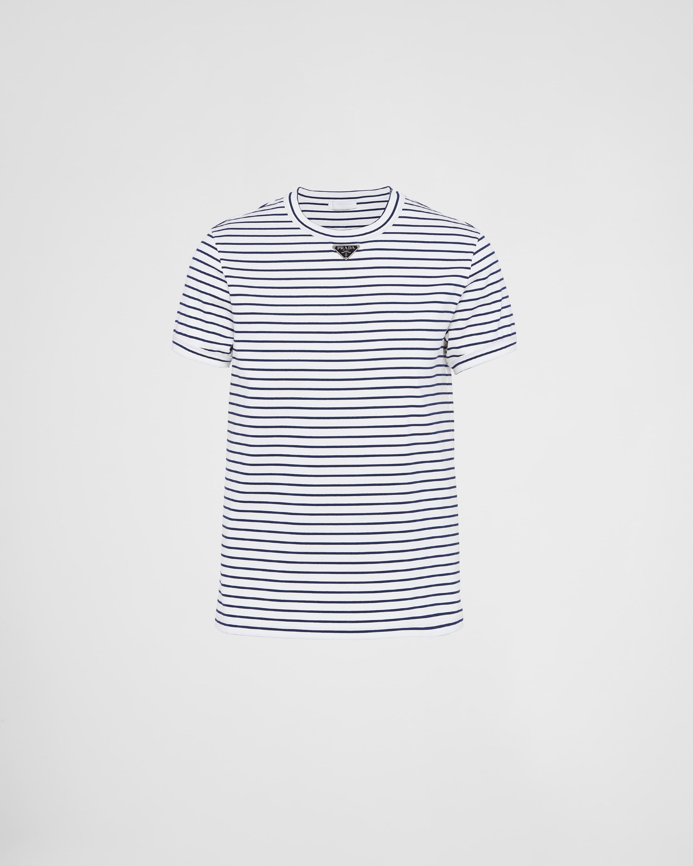 This short-sleeved cotton tee with ribbed knit crew neck has an extra-slim fit. The style is decorated with the iconic enameled metal triangle logo on the front. - Product code: UJN824_111L_F0UB0_S_222 - Extra-slim fit - Short sleeves - Ribbed knit crew neck - Straight hem - Enameled metal triangle logo - Length 68cm, Size M - Imported Height: 68cm MATERIALS Main material: 100% cotton