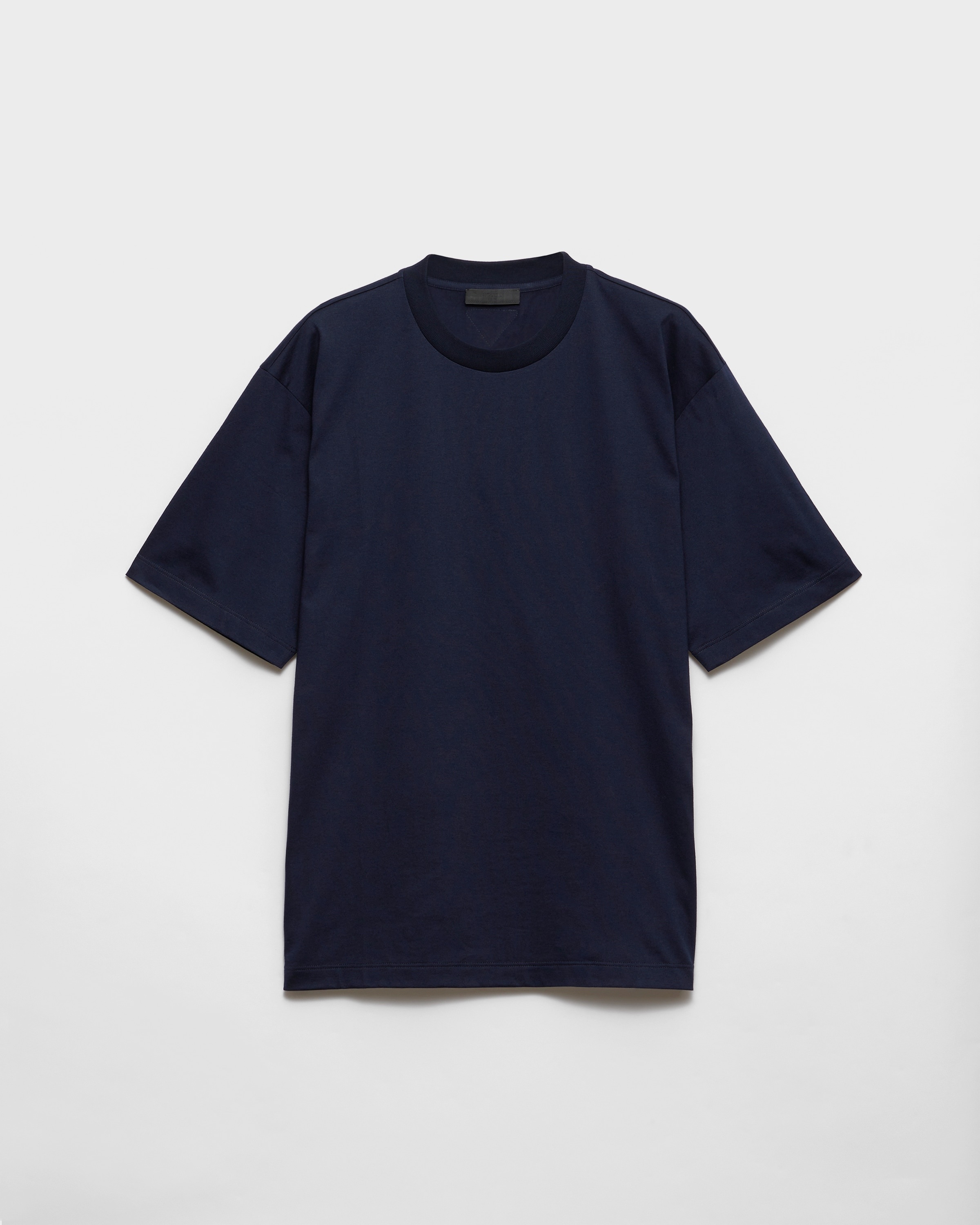 The design of this short-sleeved tee combines a contemporary, oversized silhouette with minimalist style details. The soft cotton garment completed with a ribbed knit crew neck is decorated with the iconic geometric shape of the triangle logo. - Product code: UJN921_11CD_F0124_S_WM3 - Boxy fit - Short sleeves - Ribbed knit crew-neck - Straight hem - Conceptual triangle logo - Sartorial logo label - Length 70 cm, Size: M - Imported - The model is 190 cm tall and wears a size 48 Height: 70cm MATERIALS Main material: 100% cotton