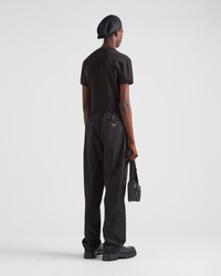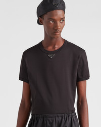 This short-sleeved cotton tee has a skinny fit and a ribbed knit crew neck. The garment is decorated with the iconic enameled metal triangle logo on the front. - Product code: UJN824_11ZM_F0002_S_222 - Extra-slim fit - Short sleeves - Ribbed knit sleeve trim - Enameled metal triangle logo - Length 68 cm, Size: M - Imported - The model is 189 cm tall and wears a size 48 Height: 68cm MATERIALS Main material: 100% cotton