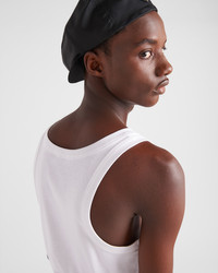 This skinny fit cotton tank top features the minimalist elegance typical of the brand. The enameled metal triangle logo stands out on the front. - Product code: UJT109_11ZM_F0009_S_222 - Extra-slim fit - Straight hem - Enameled metal triangle logo - Length 68 cm, Size: M - Imported - The model is 189 cm tall and wears a size 48 Height: 68cm MATERIALS Main material: 100% cotton