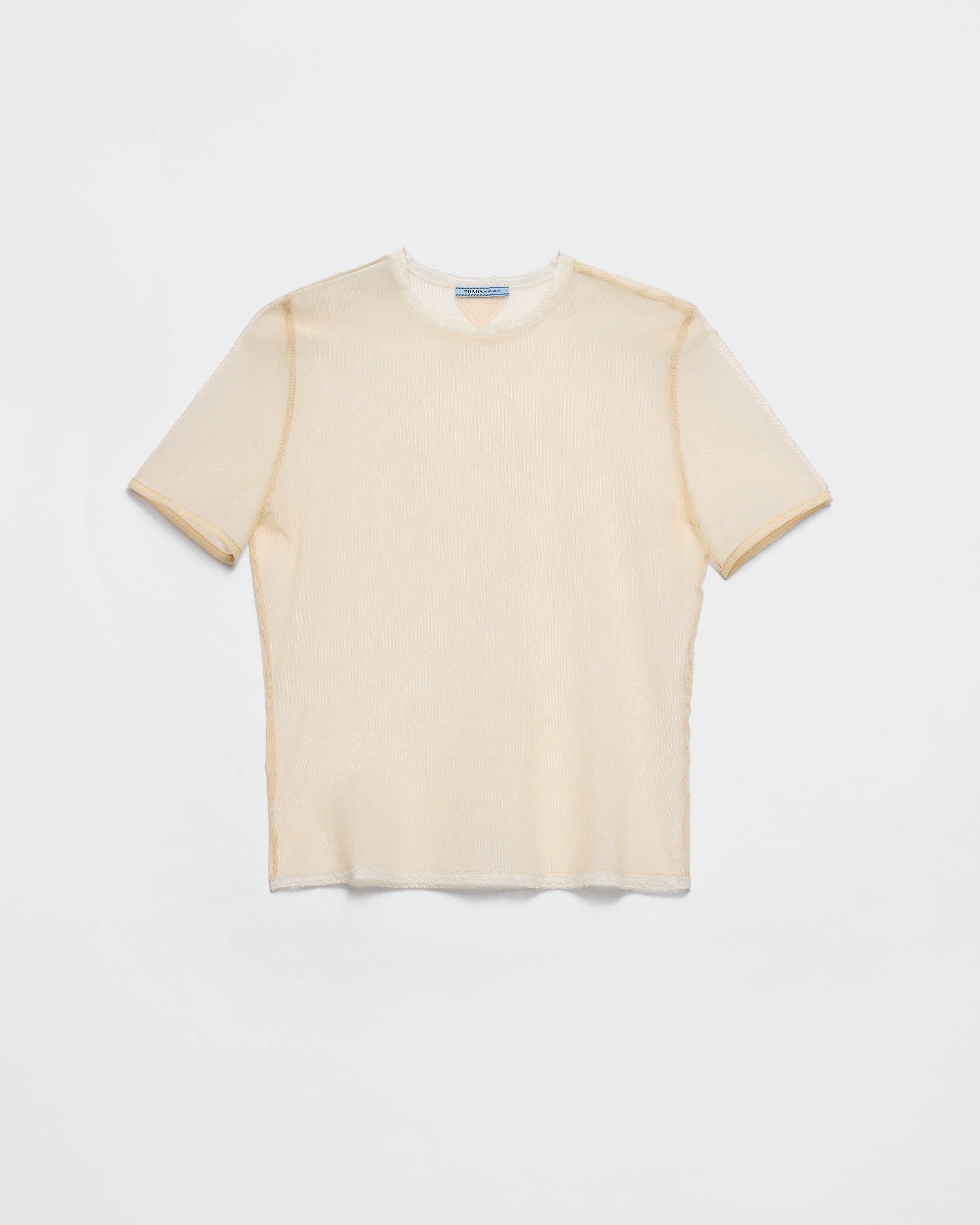 The refined delicacy of tulle enhances this light, short-sleeved tee characterized by a crew-neck with lace trim. - Product code: TS6191_17GR_F0018_S_OOO - Oversized fit - Crew-neck - Short sleeves - Fabric triangle logo with sartorial label - Imported - The model is 178 cm tall and wears a size 38 Height: 58cm MATERIALS Main material: 100% cotton