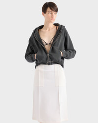 This zipper hoodie with a sporty silhouette and relaxed style is reinterpreted with refined artisan crafting that enhances the texture of cotton with a vintage look. The hoodie style has a relaxed fit with boxy lines and is decorated with the knit triangle logo. - Product code: 138639_16HG_F0207_S_OOO - Boxy fit - Raglan sleeves - With hood - Ribbed knit hem - Ribbed knit cuffs - Zipper closure - Inseam pockets - Knit triangle logo on the back - Garment dyed - Imported - The model is 181 cm tall and wears a size 38 Height: 52cm MATERIALS Main material: 100% cotton
