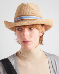 Inspired by the lightweight materials that are the stars of summer, this hat is made of crochet crafted with special artisan workmanship. The accessory is embellished with the distinctive enameled metal triangle logo. - Product code: 2HC149_2CYD_F0JZ8 - Raffia-effect yarn - Enameled metal triangle logo - Imported MATERIALS Main material: Raffia