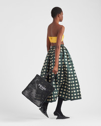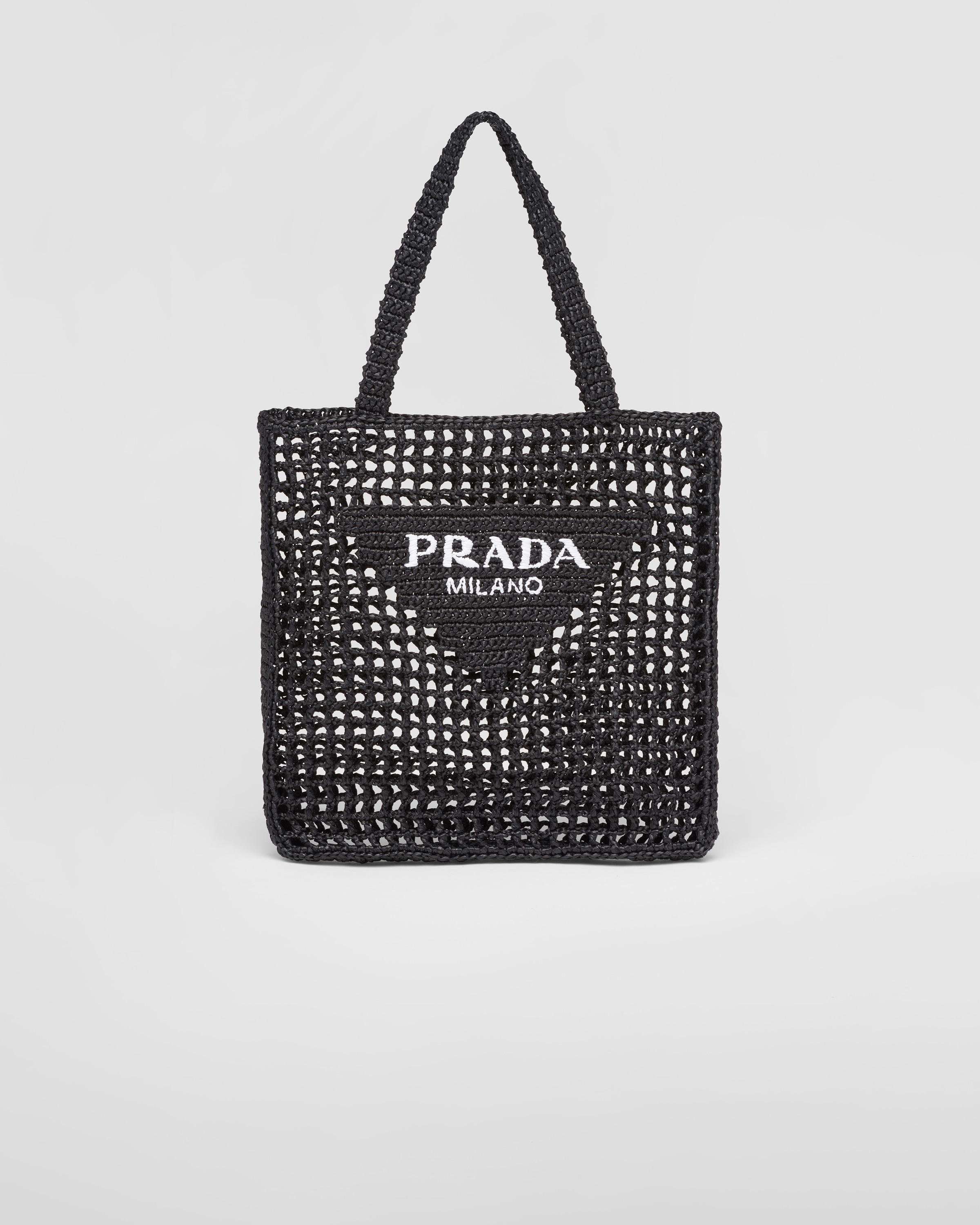 This crochet tote bag with a soft, deconstructed design boasts a light and summery mood. A new interpretation of Prada's emblematic triangle decorates the front and is embellished at its center with the embroidered lettering logo. - Product code: 1BG393_2A2T_F0002_V_OOO - Raffia-effect yarn - Crochet workmanship - Embroidered lettering logo on the front - Unlined - Imported Height: 38cm Width: 36cm Length: 3cm MATERIALS Main material: Viscose