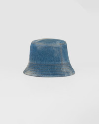 One of Prada's iconic accessories, this streetwear-inspired bucket hat comes in a new denim version. The historic enameled metal triangle logo embellishes the design. - Product code: 1HC137_12K1_F0V3N - Washed denim - Enameled metal triangle logo - Cotton lining - Imported MATERIALS Main material: Cotton