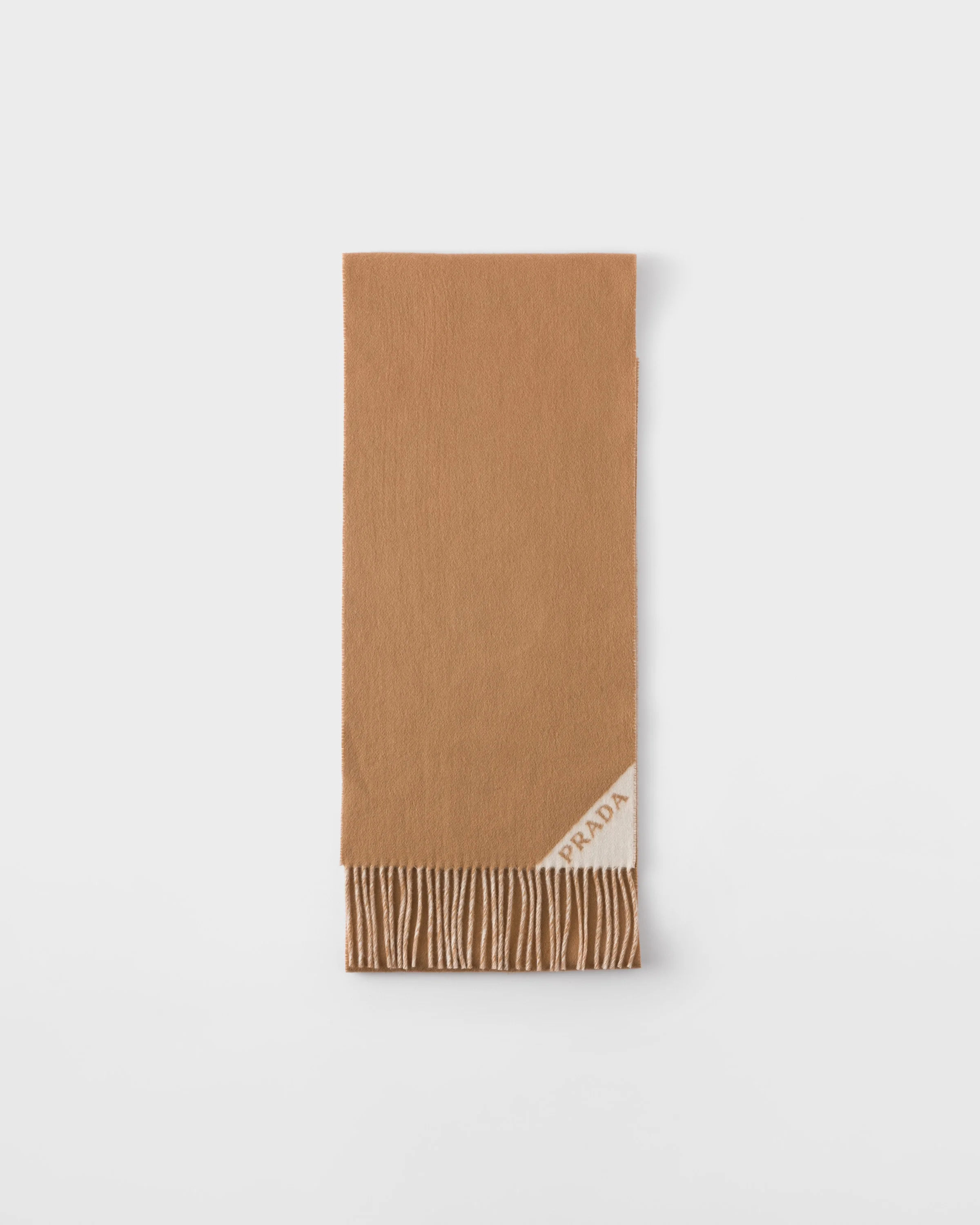 This sleek scarf is made of soft, warm cashmere with a reversible design, animated by contrasting colors. The jacquard logo, repeated on opposite corners of the scarf, adds a distinctive touch to the accessory. - Product code: 1FS055_2COO_F045Y - Jacquard logo - Two-tone double face - Fringe on two sides - 100% cashmere - Imported Height: 180cm Width: 28cm MATERIALS Main material: Cashmere
