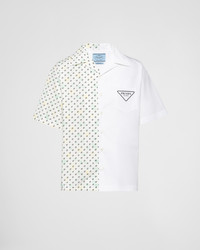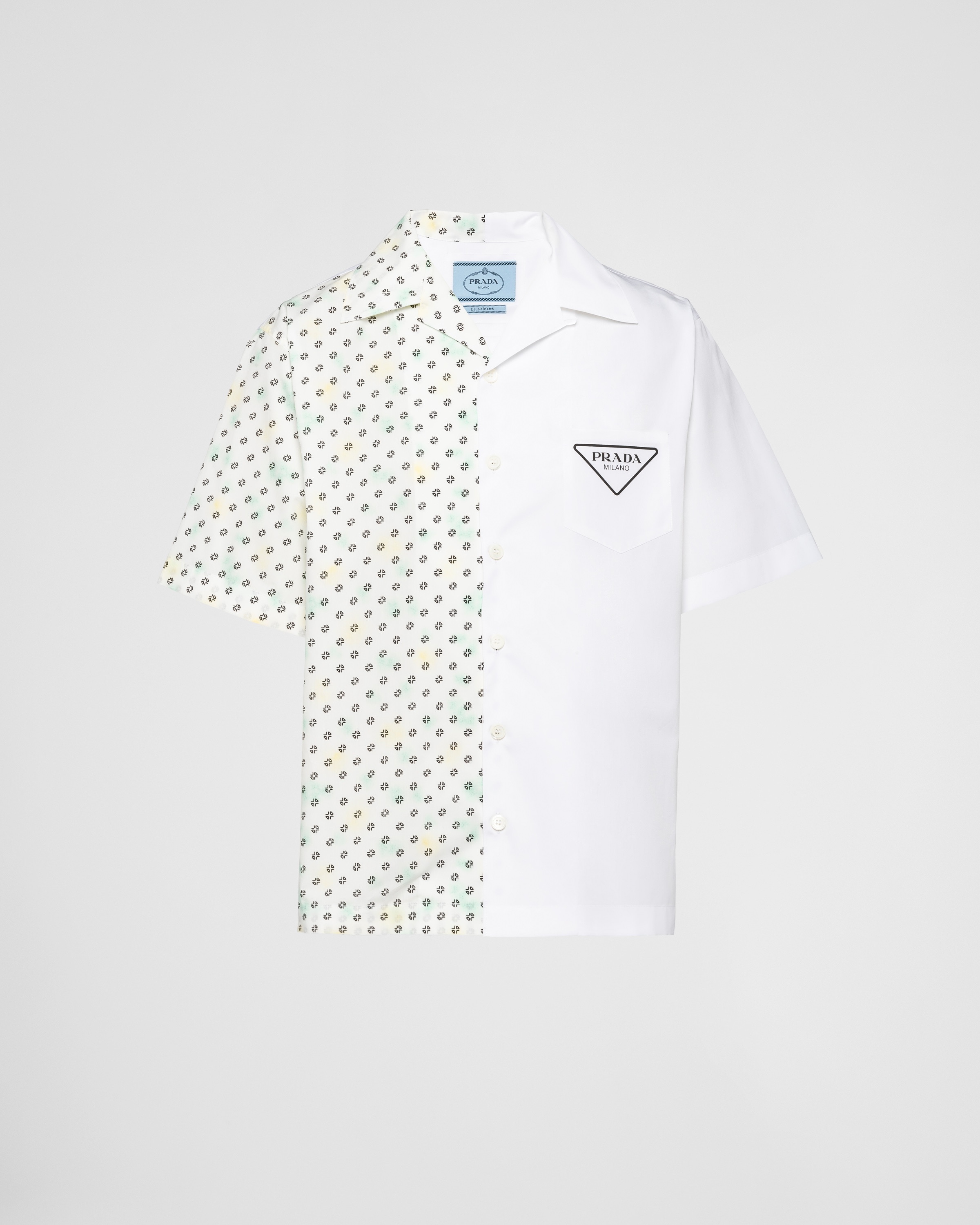 Strong graphic contrasts define Double Match shirts, animated by the dualities and contrasts emblematic of the brand. This cotton garment with a sporty oversized fit is characterized by the distinctive bowling collar. Half of the shirt is enriched by a geometric print. The triangle logo printed on the breast pocket completes the silhouette with retro charm. - Product code: UCS406_14TS_F0032_S_212 - Pattern print - Oversized fit - Bowling collar - Classic breast pocket - Straight hem - Mother-of-pearl button closure - Triangle logo printed on the front - Double Match shirt - Imported - The model is 190 cm tall and wears a size 48 Height: 72cm MATERIALS Main material: 100% cotton