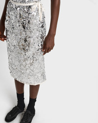 Delicately embroidered with all-over sequins, this skirt captures Prada’s sophisticated spirit, blending radiant design with exquisite artisanal craftsmanship. - Product code: P120ZR_176A_F0118_S_OOO - Sheath fit - Lined garment - Side closure with snap buttons and ribbon - Imported - The model is 180 cm tall and wears a size 38 Height: 65cm MATERIALS Main material: 100% polyamide - 100% polyester