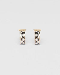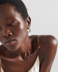 The triangle, the emblematic signature of Prada collections, is transformed into a modernist pattern that embellishes these enameled metal earrings. The half-hoop style with modern allure is completed by the lettering logo. - Product code: 1IO086_2CO2_F0TTY - For pierced ears - Enameled logo - Imported Height: 2.41cm Width: 0.85cm MATERIALS Other Materials