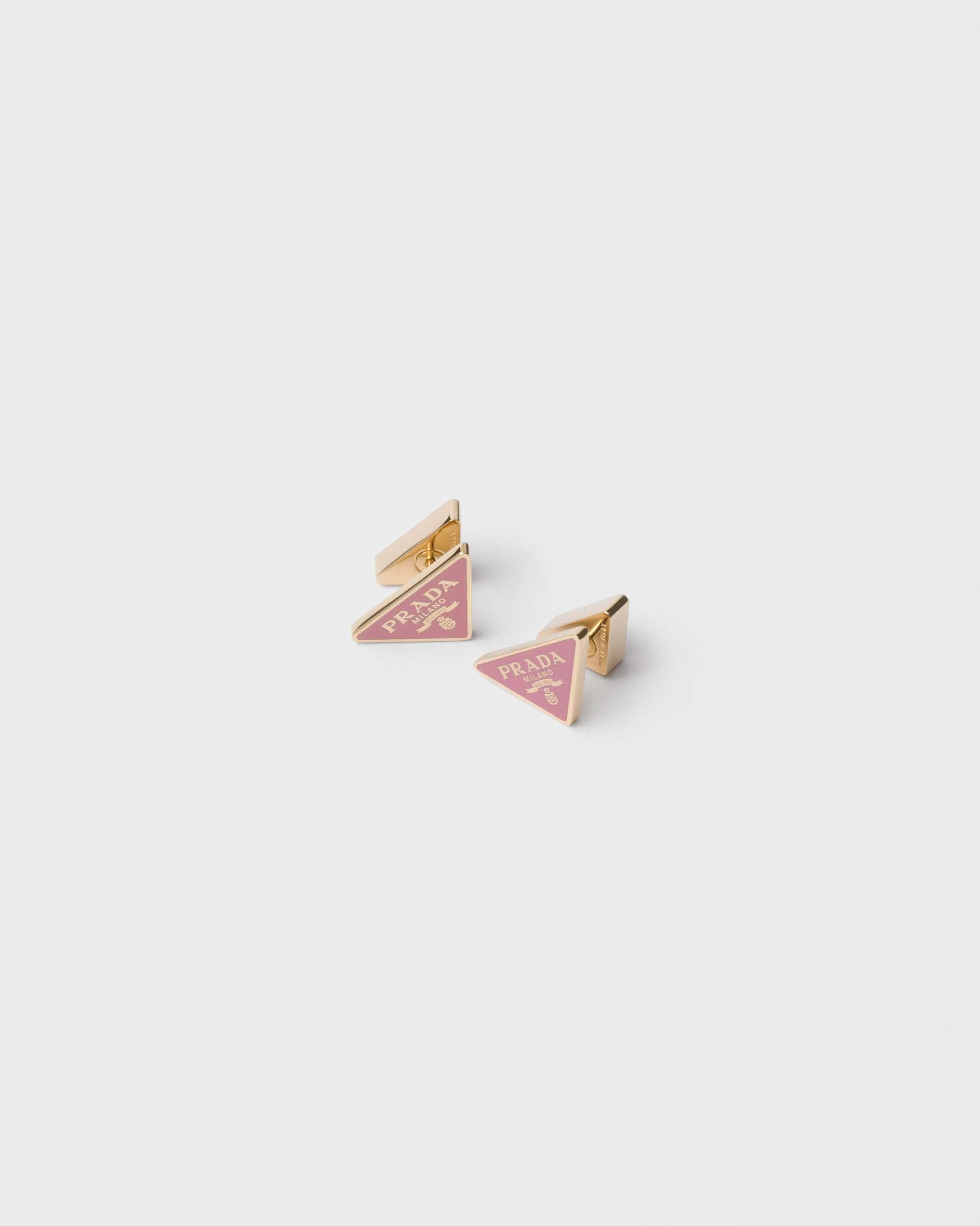 Pure form is universal of the triangle logo, the iconic signature element of Prada collections and protagonist of these enameled metal earrings with distinctive style. - Product code: 1IO336_2DR5_F0NZ4 - Enameled metal triangle logo - Imported Height: 0.95cm Width: 1.68cm MATERIALS Other Materials
