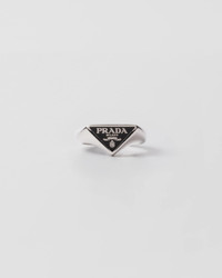 The geometric shape of Prada's triangle logo defines this 925 sterling silver ring with a modernist design. - Product code: 2JA201_2DSP_F0002 - Enameled 925 sterling silver - Visible logo on triangle - Available in different sizes - Imported MATERIALS 925 Silver