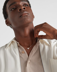 The triangle, Prada's identifying element, becomes the protagonist of this fine jewelry collection. Created as Mario Prada's logo for his travel trunks in 1913, it has been reinvented in a micro size on this pendant with a simple geometric shape embellished with pave diamonds. The sophisticated necklace made of recycled white gold embodies the brand's timeless tradition and its ability to combine different concepts in a continuous dialog affirming its uniqueness and masterful artisan know-how. - Product code: 1JCA38_2FPF_F020I - 750 White Gold (18 kt) with diamonds - Diamonds: 21 diamonds – Total carats: 0.30 ct - Cut: Round – Color: G - Clarity: VS+ - Logo on medallion - Triangle pendant: 1.3 cm (0.51 inches) - Lobster claw clasp - Adjustable size - Length 45 cm (17.71 inches) adjustable to 43 cm (16.92 inches) and 41 cm (16.14 inches) - Made in Italy - Each step of Prada's responsible gold and diamond production chain is verified and traceable thanks to Aura Blockchain technology. - Imported MATERIALS Gold 750