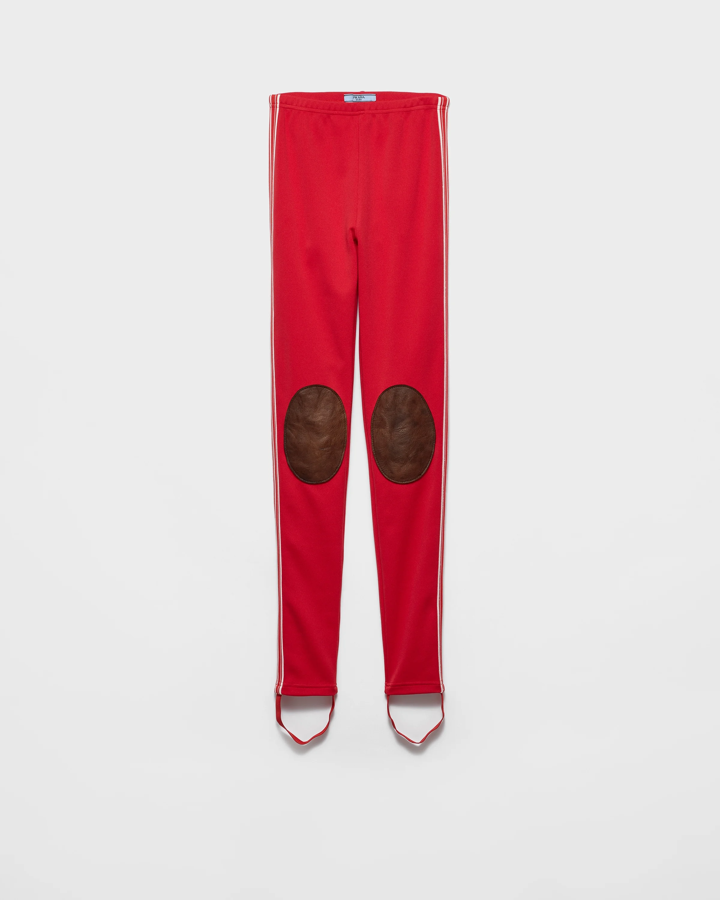 A slim fit and iconic details: leather patches and racing stripes reveal the encounter between functionality and contemporary style. - Product code: 132415_18VX_F0011_S_OOO - Slim fit - Elasticized waistband - Sartorial logo label on the back - Elasticized stirrup - Knit racing stripe on the sides - Leather patches - Imported - The model is 180 cm tall and wears a size 38 Height: 100cm MATERIALS Main material: 100% polyester