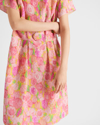 The Fall/Winter 2025 collection questions the perception of femininity and redefines its emblematic garments. This dress combines loose lines, details with vintage charm, and a vibrant floral print, an expression of unconventional, modernist elegance. - Product code: P3Q66K_18E7_F0028_S_OOO - Loose fit - Unlined garment - Boat neck - Back zipper closure - Short sleeves - Removable leather belt - Imported - The model is 180 cm tall and wears a size 38 Height: 105cm MATERIALS Main material: 28% acrylic 72% silk