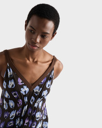 This marocain dress with flowing lines is enhanced with a floral print from the archives. A plunging V neck frames the sophisticated, light silhouette characterized by a flared cut that adds movement to the design. - Product code: P3R38_19D9_F0030_S_OOO - Anemone print - Loose fit - Unlined garment - V-neck - Sleeveless - Flared hem - Imported - The model is 179 cm tall and wears a size 38 Height: 120cm MATERIALS Main material: 100% Viscose