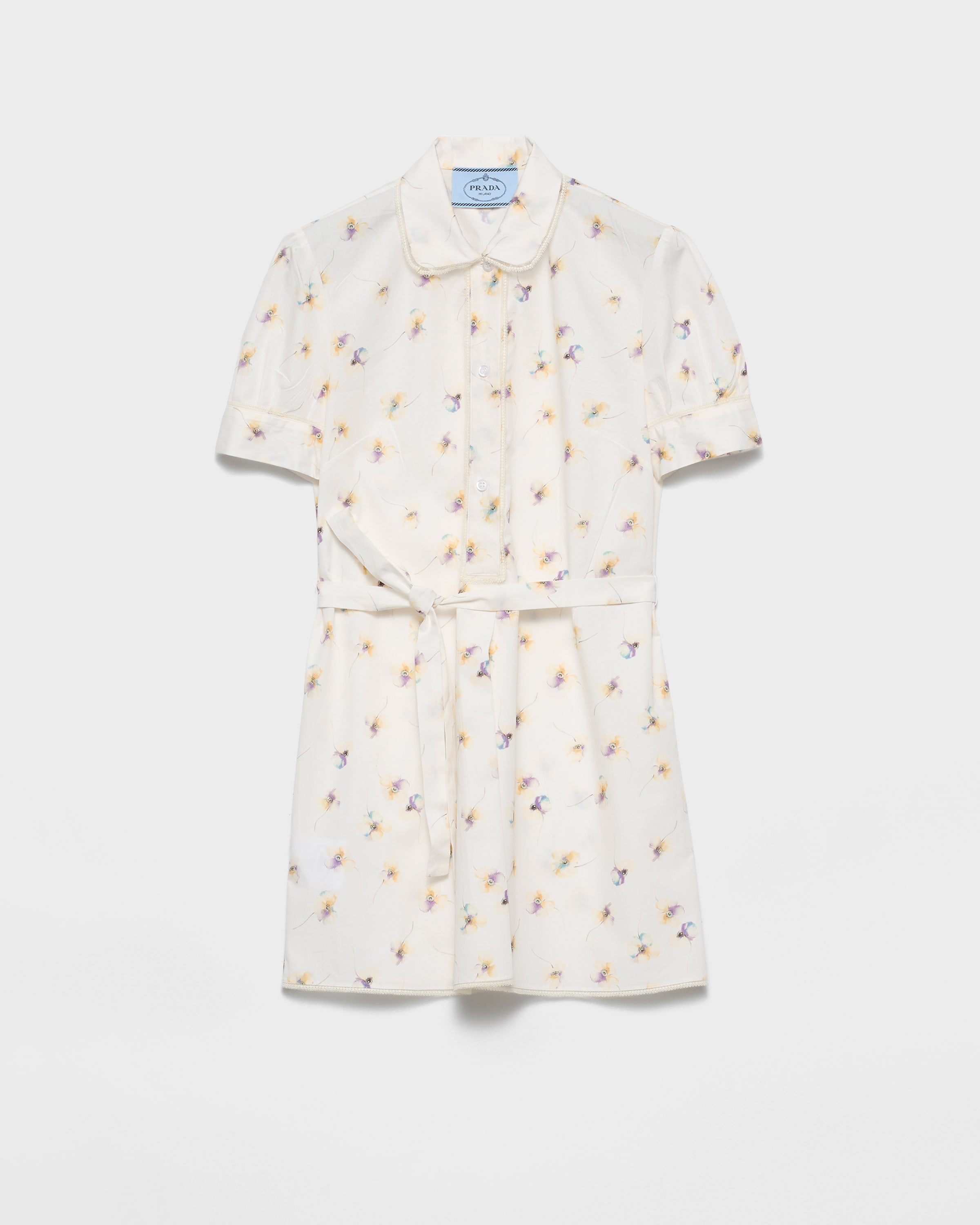 Romance and nostalgia blend in the design of this cotton mini-dress. The simple and refined silhouette is completed by a delicate floral print that enhances the design with vintage allure. - Product code: P3Q57_179D_F0061_S_OOO - «Primula» print - Flared fit - Unlined - Baby collar - Front button closure - Short sleeves - Fabric triangle logo - Straight hem - Imported - The model is 180 cm tall and wears a size 38 Height: 83cm MATERIALS Main material: 100% cotton