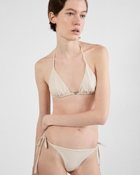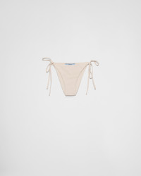 This hipster bikini bottom with a sleek, contemporary design is defined by the side ties and the sparkling tonal rhinestone embellishment. For sustainable care to preserve the product's characteristics and reduce microfiber shedding, we recommend not washing the item too often. Let the product air out after every use and have it dry cleaned at a specialized ecological dry cleaners. - Product code: 70212R_13K9_F03OP_S_OOO - Lined garment - Hipster fit - Side tie closure - Imported - The model is 179 cm tall and wears a size 38 MATERIALS Main material: 18% elastane 82% recycled polyamide