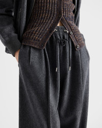 These joggers are reinterpreted with elegance: soft lines and fine fabrics celebrate Prada's innovative spirit and sartorial savoir-faire. - Product code: 132411_1ZCF_F0480_S_OOO - Jogger fit - Elasticized drawstring waistband - Inseam pockets - Center-back fabric triangle - Pressed garment - Imported - The model is 180 cm tall and wears a size 38 Height: 110cm MATERIALS Main material: 30% cashmere 70% virgin wool