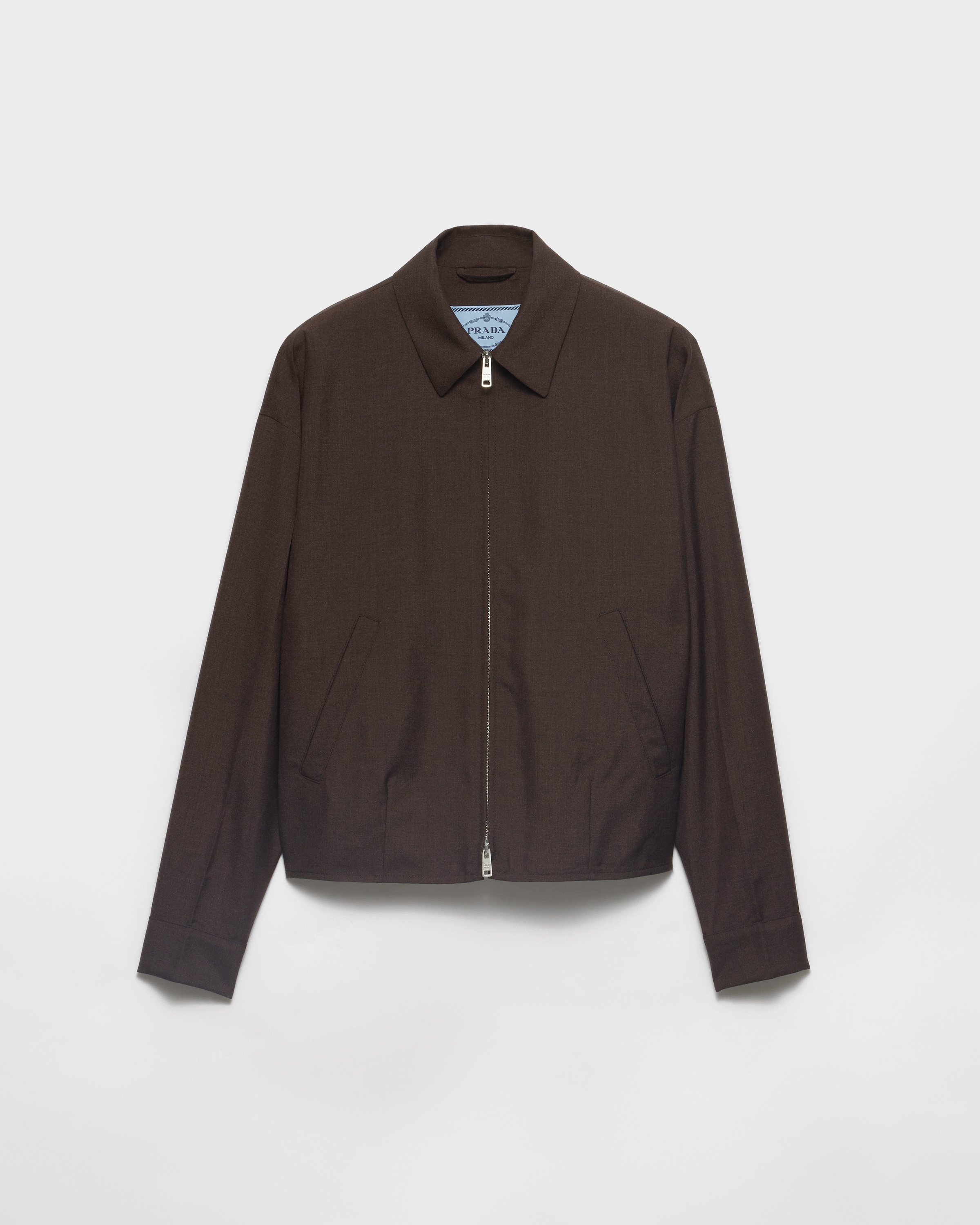 Soft lines and sleek details define the design of this blouson jacket with contemporary style. The kid mohair garment combines a simple shape with refined artisan workmanship that add character to the style. - Product code: P8006_12I1_F0324_S_OOO - Shirt-style collar - Buttoned cuffs - Zipper closure - Welt pockets - Unlined - Fabric triangle logo - Elasticized hem - Imported - The model is 176 cm tall and wears a size 38 Height: 54cm MATERIALS Main material: 60% mohair 40% virgin wool