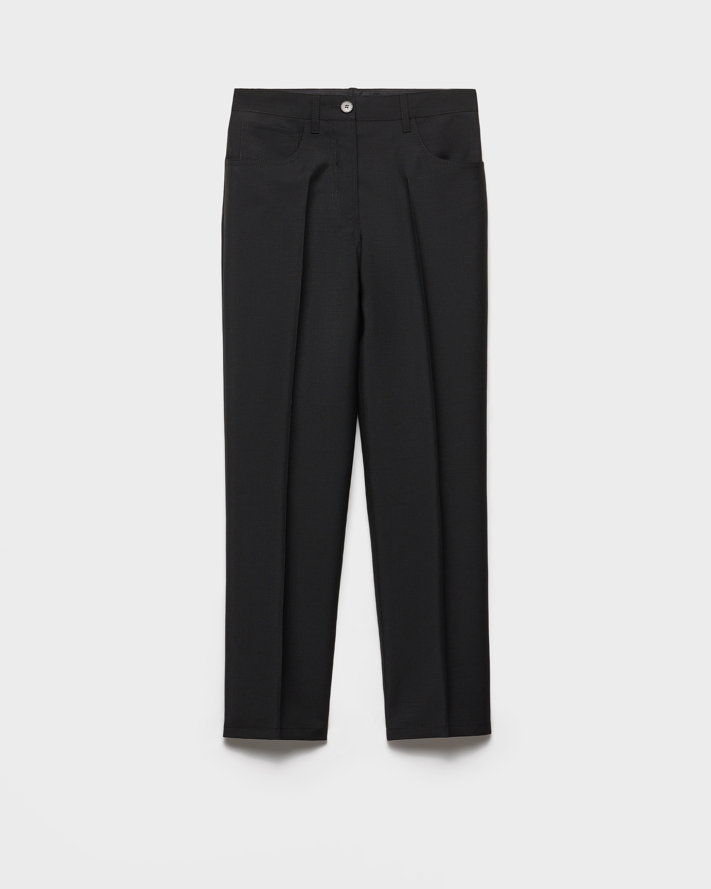 A straight-cut five-pocket silhouette characterizes these kid mohair pants with sleek details that create a sophisticated, contemporary style. - Product code: P266J_12I1_F0002_S_OOO - Straight fit - Lined garment - Zipper fly with button - Five pockets - Imported - The model is 180 cm tall and wears a size 38 Height: 120cm MATERIALS Main material: 60% mohair 40% virgin wool