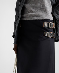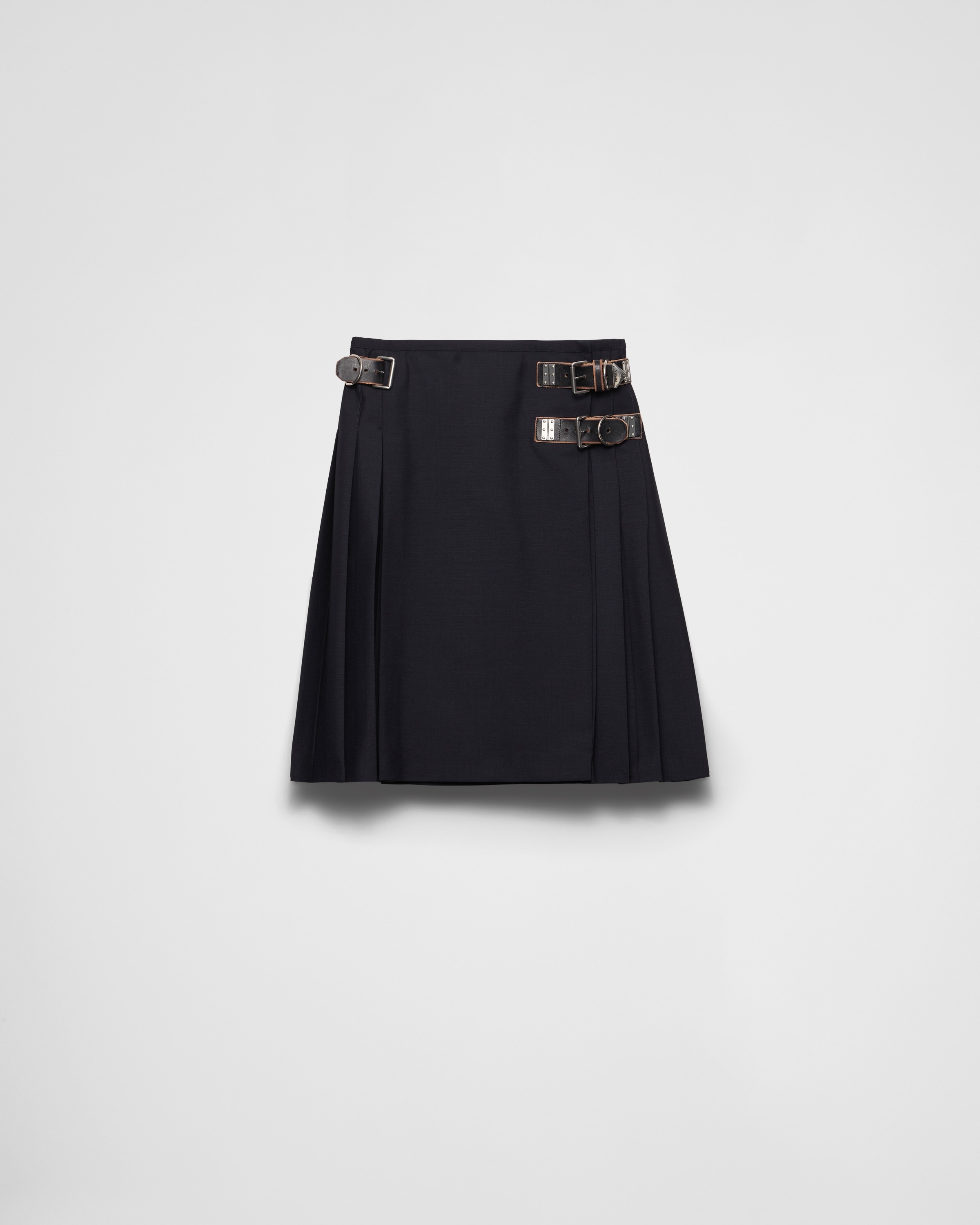The classic silhouette of this kid mohair skirt is reinterpreted with bold style details where contrasting aesthetics interact. Narrow leather straps with studs and rings add character to the timeless, feminine style. - Product code: P197YE_12I1_F0008_S_OOO - Pleated style - Garment with slip - Side closure with snap and button - Leather strap detail - Imported - The model is 180 cm tall and wears a size 38 Height: 70cm MATERIALS Main material: 60% mohair 40% virgin wool