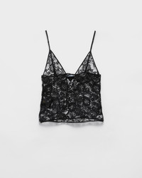 The refined elegance of lace defines this lingerie-style top with a delicate design decorated with the iconic and sleek geometric shape of the triangle logo. - Product code: TP6238_13B0_F0002_S_OOO - Slim-fit silhouette - Spaghetti straps - Fabric triangle logo - Imported - The model is 177 cm tall and wears a size 38 Height: 53cm MATERIALS Main material: 71% cotton 29% polyamide