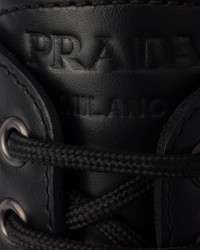 These lace-up loafers feature a hybrid design that combines classic lines and contemporary functionality. The leather design defined by sporty rubber soles is decorated with the enameled metal triangle logo. - Product code: 2EE416_070_F0002_F_G001 - With laces - Prada Milano logo embossed on the tongue - Rubber lug sole with leather welt - Sole height 60 mm - Removable leather-covered insole - Imported MATERIALS Main material: Calfskin
