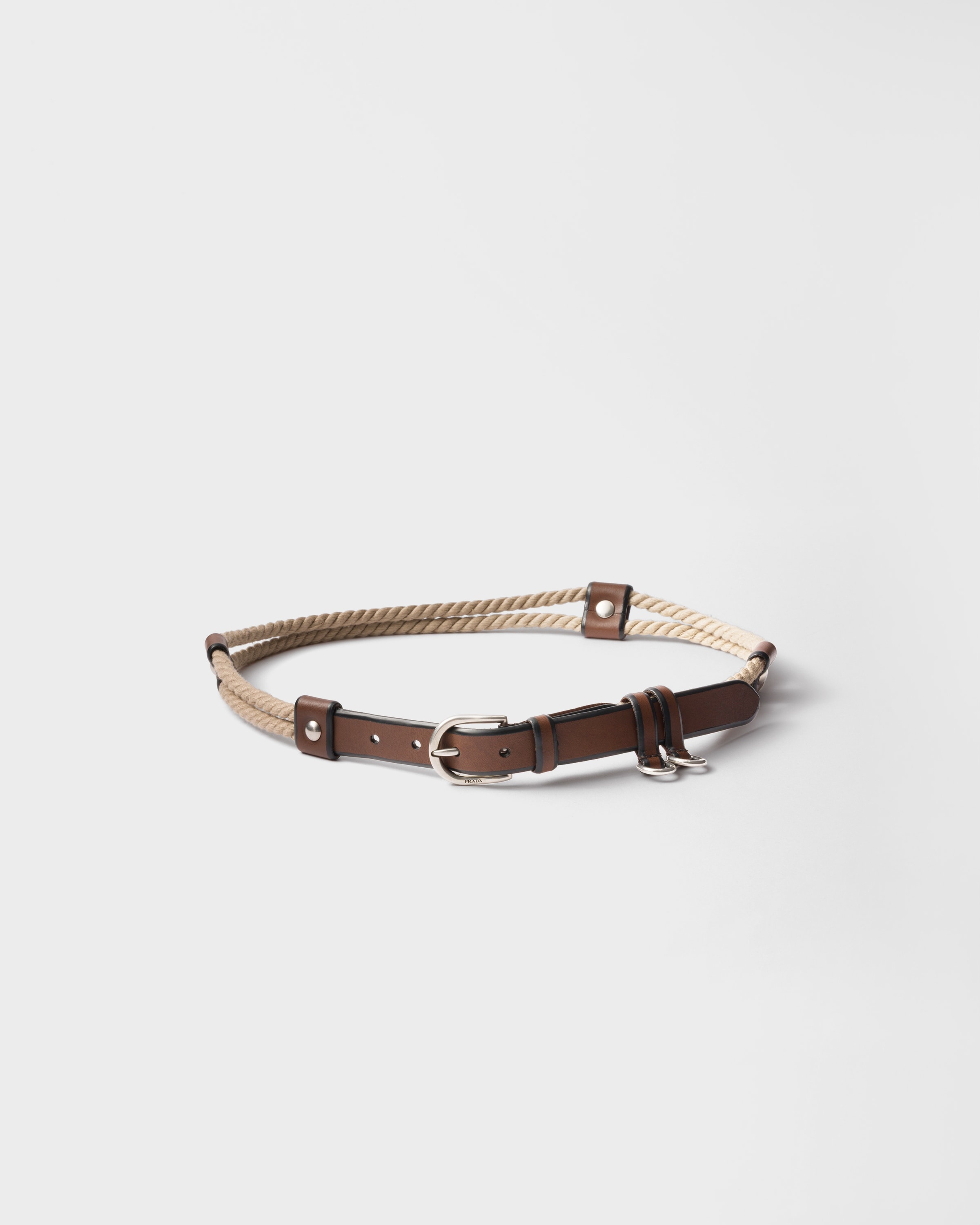 The codes of nautical style inspire this belt with a distinctive design made of cord and leather. The metal buckle, characterized by sleek, curved lines, completes the refined, hybrid accessory. - Product code: 2CS146_2HJK_F0BW5 - Metal buckle - Logo engraved on the buckle - Imported Height: 2.5cm MATERIALS Main material: Calfskin