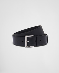 The tip of this leather belt features an iconic, enameled-metal triangle logo, which appeared for the first time on trunks designed by Mario Prada in 1913. - Product code: 1CC545_8NQ_F0002 - Metal buckle - Enameled-metal triangle logo - Imported Height: 3.5cm MATERIALS Main material: Calfskin