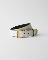 The tip of this leather belt features an iconic, enameled-metal triangle logo, which appeared for the first time on trunks designed by Mario Prada in 1913. - Product code: 1CC545_8NQ_F097W - Metal buckle - Enameled-metal triangle logo - Imported Height: 3.5cm MATERIALS Main material: Calfskin