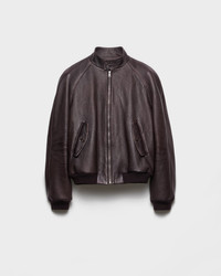 Refined workmanship redefines leather garments, emphasizing the nuances and unique character of a timeless material. This bomber jacket with soft lines and knit details embodies a distinctive and versatile style characterized by a combination of vintage references and contemporary touches. - Product code: UPW576_17T8_F0003_S_OOO - Lined garment - Regular fit - Zipper closure - Stand-up collar - Raglan sleeves and knit cuffs - Flap pockets - Knit hem - Leather triangle logo on the back - Final waxing treatment - Imported - The model is 189 cm tall and wears a size 48 Height: 64cm MATERIALS Main material: Buckskin