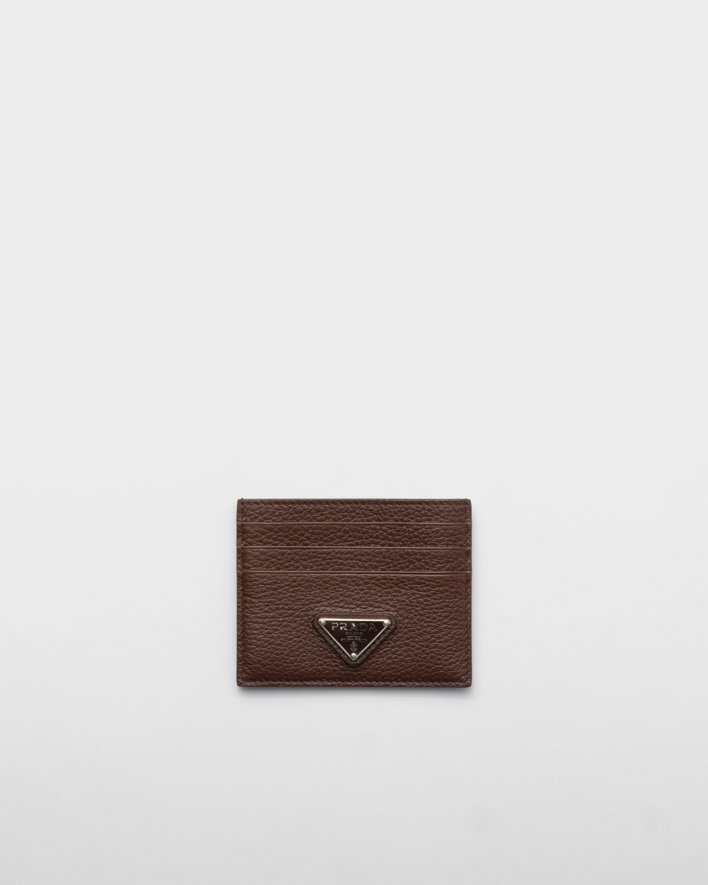 This leather card holder with a sleek, refined design is defined by six card slots and a practical internal pocket. The accessory is completed by the iconic enameled metal triangle logo. - Product code: 2MC025_2E54_F0038 - Enameled metal triangle logo - Six card slots - Internal pocket - Moire and leather lining - Imported Height: 8cm Width: 10cm MATERIALS Main material: Calfskin