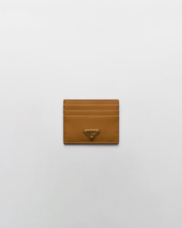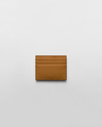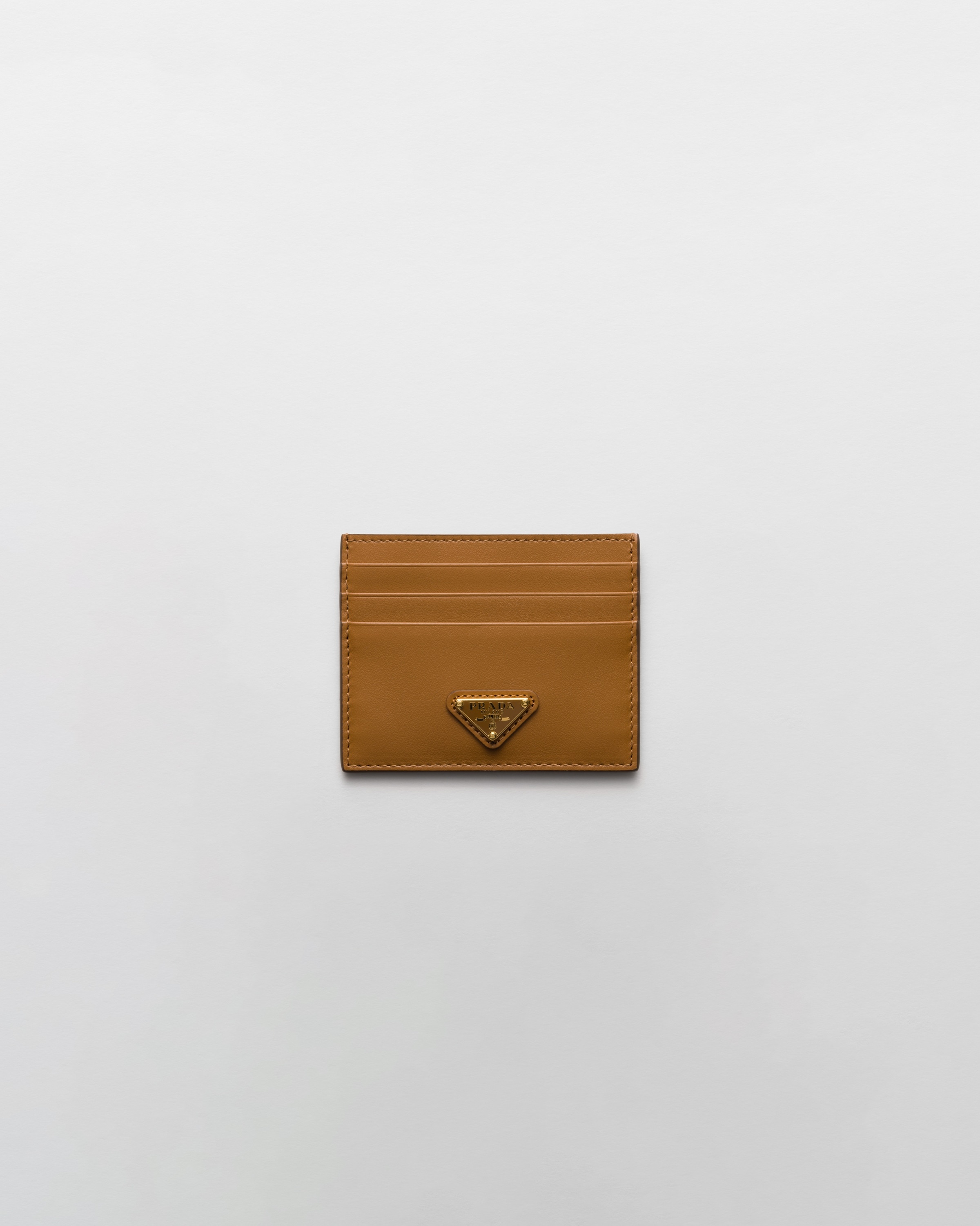 This leather card holder with six external slots and a practical internal pocket has a sleek and sophisticated design. The accessory is completed by the iconic signature of the enameled metal triangle logo. - Product code: 1MC025_2CNP_F03BH - Enameled metal triangle logo - Six card slots - One internal pocket - Imported Height: 8cm Width: 10cm MATERIALS Main material: Calfskin