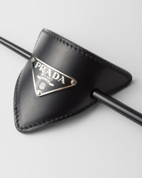 This leather hair clip is decorated with the Prada logo. - Product code: 1IF004_8NQ_F0002 - Leather - Enameled metal triangle logo - Plexiglas pin - Imported MATERIALS Main material: Calfskin