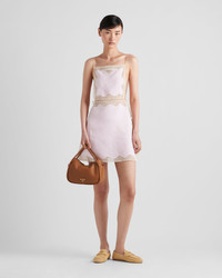 A contemporary design with a casual attitude defines this handbag with refined details illuminated by metal hardware. The compact and versatile style features clean, minimalist lines emphasized by the buttery touch of soft grain leather. The accessory, an expression of exceptional artisanal know-how, is decorated with the enameled metal triangle logo. - Product code: 1BA451_2CYS_F03BH_V_OVO - Double leather handles, drop 13 - Removable leather shoulder strap, length 75 cm - Open side pockets - Metal hardware - Enameled metal triangle logo on the front - Zipper closure - Logo-print nylon lining with patch pocket - Imported Height: 18cm Width: 25cm Length: 10.5cm MATERIALS Main material: Calfskin