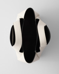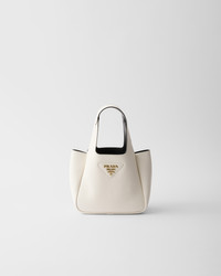The unstructured silhouette of this leather mini bag is accentuated by the reverse stitching that gives the design a soft, rounded shape. The metal lettering logo on the front elevates the lightweight, modern, and sophisticated accessory. - Product code: 1BA349_2DKV_F0QO3_V_ONO - Leather handles - Metal hardware - Metal lettering logo on the front - Magnetic flap closure - Nappa leather lining with three compartments - Imported Height: 15.5cm Width: 18cm Length: 10cm MATERIALS Main material: Calfskin