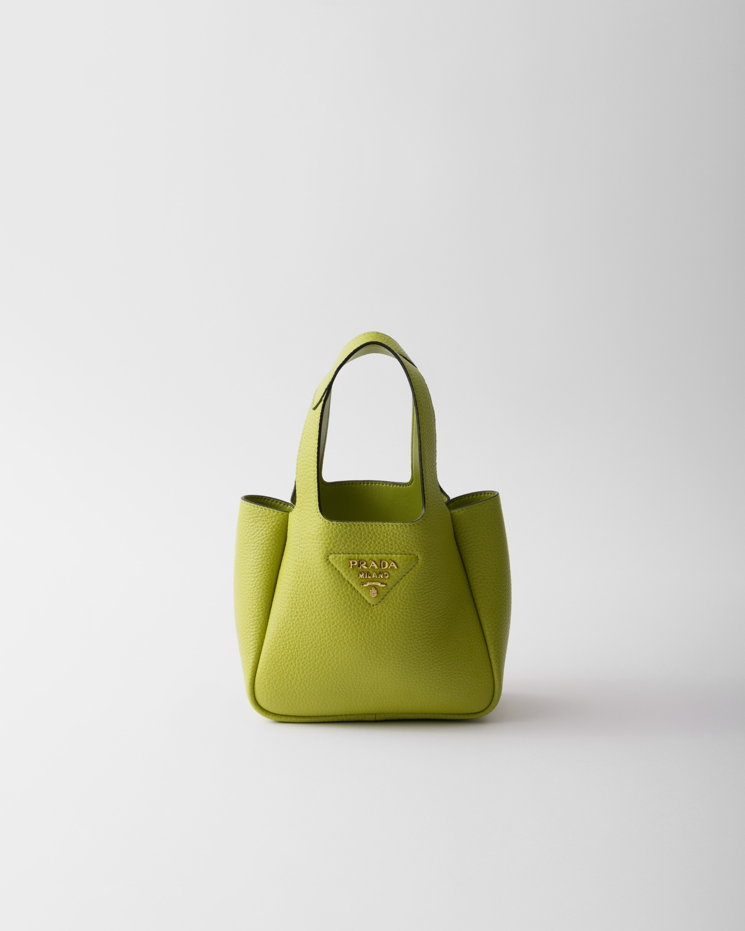 The unstructured silhouette of this leather mini bag is accentuated by the reverse stitching that gives the design a soft, rounded shape. The metal lettering logo on the front elevates the lightweight, modern, and sophisticated accessory. - Product code: 1BA349_2DKV_F04FZ_V_ONO - Leather handles - Metal hardware - Metal lettering logo on the front - Magnetic flap closure - Nappa leather lining with three compartments - Imported Height: 15.5cm Width: 18cm Length: 10cm MATERIALS Main material: Calfskin