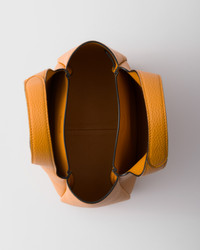 The unstructured silhouette of this leather mini bag is accentuated by the reverse stitching that gives the design a soft, rounded shape. The metal lettering logo on the front elevates the lightweight, modern, and sophisticated accessory. - Product code: 1BA349_2DKV_F04GV_V_ONO - Leather handles - Metal hardware - Metal lettering logo on the front - Magnetic flap closure - Nappa leather lining with three compartments - Imported Height: 15.5cm Width: 18cm Length: 10cm MATERIALS Main material: Calfskin