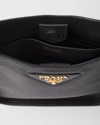 This versatile leather bag boasts a sleek and functional design. The shoulder strap adds a sporty element to the accessory, elevated by the metal logo lettering that stands out on the simple yet distinctive geometry of the iconic triangle. - Product code: 1BH191_2DKV_F0632_V_7NO - Adjustable and detachable logo-print woven tape shoulder strap, length 95 cm. Maximum length 107 cm - Minimum length 56 cm - Maximum drop 60 cm - Minimum drop 40 cm - Detachable, adjustable leather shoulder strap, length: 100 cm - Metal hardware - Metal lettering logo on the front - Magnetic flap closure - Logo-print nylon lining with card slots - Imported Height: 20cm Width: 19cm Length: 6cm MATERIALS Main material: Calfskin