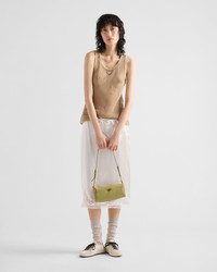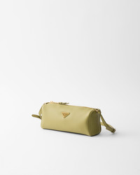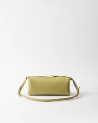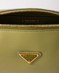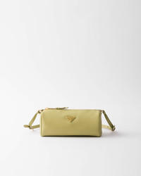 With its geometric shape, this leather pouch blends modern elegance and functionality. - Product code: 1BC239_2CYS_F0362_V_OVO - Zipper closure--Enameled metal triangle logo--Adjustable leather handle--Logo-print nylon lining with zipper pocket - Imported Height: 9cm Width: 22cm Length: 7.5cm MATERIALS Main material: Calfskin