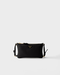 With its geometric shape, this leather pouch blends modern elegance and functionality. - Product code: 1BC238_2CYS_F0002_V_OVO - Zipper closure--Enameled metal triangle logo--Adjustable leather handle--Logo-print nylon lining with zipper pocket - Imported Height: 14cm Width: 24.5cm MATERIALS Main material: Calfskin
