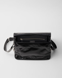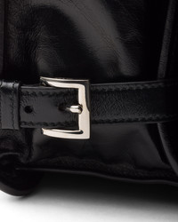 Modern and versatile, this shoulder bag features a streamlined silhouette crafted from soft leather with a glossy finish and adorned with the distinctive triangle logo. - Product code: 2VD073_2CYR_F0002_V_OOO - Decorative side straps with buckles - Adjustable leather shoulder strap. Maximum length 120 cm - Minimum length 80 cm - Maximum drop 52 cm- Minimum drop 30 cm - Enameled metal triangle logo - Magnetic closure - Shoulder strap with metal ring for bag charms - Back zipper pocket - Interior with zipper pocket - Logo-print Re-Nylon lining - Imported Height: 20cm Width: 30cm Length: 11cm MATERIALS Main material: Calfskin