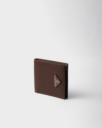 This leather wallet, which stands out for its sleek design, has eight card slots and two bill compartments. The enameled metal triangle logo completes the accessory with a distinctive touch. - Product code: 2MO513_2E54_F0038 - Enameled metal triangle logo - Eight card slots - Two bill compartments - Moire and leather lining - Imported Height: 9.5cm Width: 11cm MATERIALS Main material: Calfskin