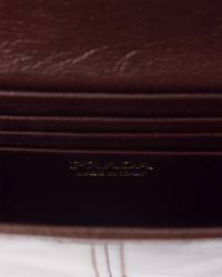 This wallet with refined details has a pragmatic and sophisticated design. The accessory is completed with the detachable shoulder strap that gives it a functional and versatile character. - Product code: 1MT036_2CYR_F0003 - Snap closure - Enameled metal triangle logo - Three card slots - Leather lining - Adjustable, detachable leather shoulder strap - Imported Height: 9.5cm Width: 20cm MATERIALS Main material: Calfskin