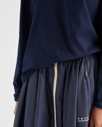 The circle skirt, an emblematic silhouette of Prada collections, is reinterpreted with a sporty design in Re-Nylon inspired by techwear. For sustainable care to preserve the product's characteristics and reduce microfiber shedding, we recommend not washing the item too often. Let the product air out after every use and have it dry cleaned at a specialized ecological dry cleaners. - Product code: 21Y951_1WQ9_F0AA7_S_OOO - Unlined garment - Zipper closure - Zipper pockets - Elasticized drawstring waist - Printed logo on the front - Full skirt - Imported - The model is 177 cm tall and wears a size 38 Height: 75cm MATERIALS Main material: 100% recycled polyamide